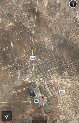 All the towns of this, the Permian Basin, were places where oil workers lived, and most people went to Odessa for excitement. But if you were broke, as me and my two coworkers were this night, then you might go cruising around the oil field roads, look at the stars. There was no better place for this then the top of the oil storage tanks, away from the dangerous desert crawlers, and high enough to be in the breeze. We drove around until we picked one randomly, but far enough from the highway to make certain that the car’s headlights would not interfere with our stargazing. It was late at night, and very, very dark; we could see the cars on Highway 385 in the distance. We had not been gazing for very long when someone saw the light in the distance.